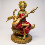 Enhance your space with wisdom and creativity through this elegant polyresin Saraswati Mata statue, a graceful addition to your spiritual decor. Crafted from durable polyresin, this handcrafted Hindu goddess idol depicts Goddess Saraswati seated with a veena, adorned with intricate gold, white, and blue detailing, symbolizing knowledge and arts. Perfect for pooja rooms, study areas, or as a thoughtful gift, it brings intellectual inspiration and divine blessings to your home.