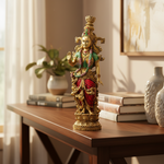 Add a touch of divine grace to your home with this graceful polyresin Radha statue, a perfect blend of spirituality and elegant decor. Crafted from durable polyresin, this handcrafted Hindu god idol depicts young Radha in a charming pose, adorned with intricate gold, red, and green detailing, standing on a lotus base. Ideal for pooja rooms, living spaces, or as a striking centerpiece, it brings joy, love, and spiritual energy to your home.