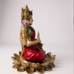 The detailed artistry, vibrant red attire, and antique golden finish give it a luxurious and auspicious appeal. Perfect for home temples, living rooms, offices, or festive gifting, this Lakshmi Mata statue radiates positivity and prosperity wherever placed.