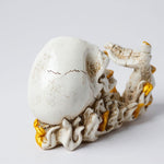 Serve your wine in style with this Skull Hand Wine Bottle Holder, a stunning fusion of art and functionality. Crafted from premium polyresin, this unique holder features a skull and skeletal hand design that appears to lift and cradle your wine bottle, making it a true statement piece for your bar or dining area.