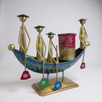 This beautifully handcrafted metal boat décor serves as a pen stand, making it a rare and versatile desk or home accessory. Designed in a tribal village theme with 4 miniature figures and intricate hand-painted detailing, it brings a touch of traditional art to modern spaces.