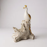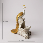 Bring a touch of regal beauty to your home with this exquisite 13-inch Elegant White & Gold Polyresin Peacock on Stump Statue. Crafted from high-quality polyresin, this stunning piece features a majestic peacock perched atop a textured stump, adorned with a white body and intricate gold accents on its tail and crown. Perfect for adding a vibrant and cultural charm to your living room, garden, or pooja space, this statue symbolizes grace and prosperity. Its durable design ensures long-lasting appeal, and a gentle wipe with a soft, dry cloth keeps it pristine. Ideal as a luxurious gift or a statement piece for Indian home decor.
